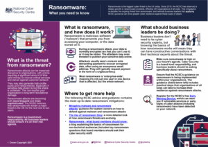 Due to the extreme threat of ransomware, the NCSC have developed a Ransomware Hub to host all their information regarding the topic and offering organisations access to their ‘Guide to Ransomware’. Please click here if you would like to print the image above for your workplace.